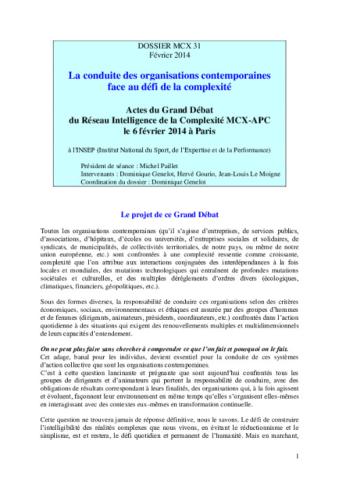 Grand débat du Réseau Intelligence de la complexité du 06 02 14 : La conduite des organisations contemporaines face au défi de la complexité