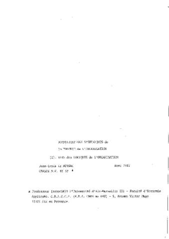 Formalisations systémiques de la théorie de l'organisation. (I) Vers des logiques de l'organisation