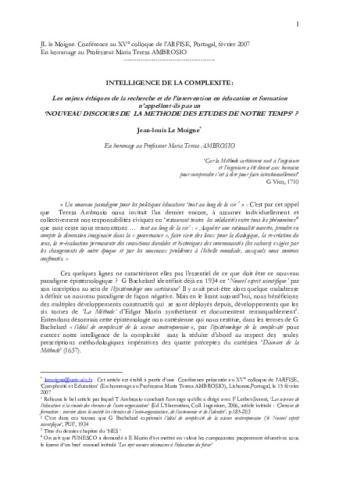 Intelligence de la complexité : retour sur « la méthode des études de notre temps »