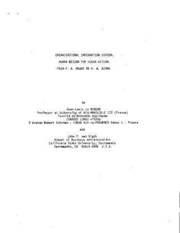 Organizational information system : human design for human action. From F.A. Hayek to H.A. Simon