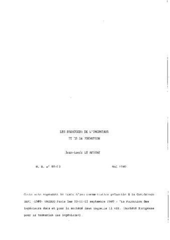 NrG n°80-03, 13 pages (Mai 1980). Ce texte sera le support d'une communication présentée à la conférence "La formation des ingénieurs dans et pour la société dans laquelle ils vivent" organisée par l'UNESCO et la SEFI (10-11-12 septembre 1980). Publié ensuite dans la revue "Arts & manufactures" de l'association des anciens élèves de l'ECP n°324, p.11/15 (Mars 1981). La version anglaise, intitulée "The paradoxes of the contemporary engineer", paraîtra dans la revue "European journal of engineering education" (Amsterdam), n°6, p.105/115 (Octobre 1981).