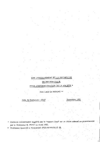 Sur l'enseignement et la recherche en informatique, pour l'informatisation de la société