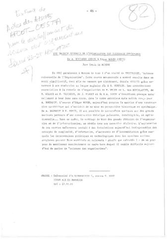 [Abstract seulement] Actes des assises (organisées par l'AFSCET et le CESTA) pour le développement des sciences de l'organisation (Paris, 23 Novembre 1982), p.45.