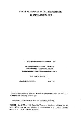 NrG n°88-04, 22 pages (Avril 1988). Communication au colloque "Systèmes naturels et systèmes artificiels" du C.I.R.C.E.S.S. (Strasbourg, Octobre 1987). Publié ultérieurement dans l'ouvrage collectif "Systèmes naturels et systèmes artificiels" sous la direction de F. Tinland (éditions Champ Vallon, 1991), p.123/139. Remanié et publié sous le titre : "Quelle épistémologie pour une science des systèmes naturels « qui sont avec cela artificiels » ?" dans la "Revue Internationale de Systémique" Vol. 3, n°3, p.251/271 (1989).