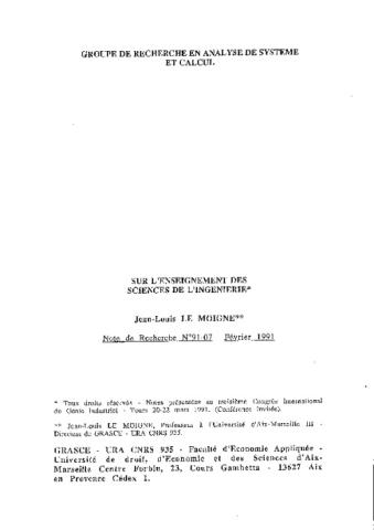 Conférence invitée au Congrès International de Génie Industriel (Tours, Mars 1991). NrG n° 91-07, 18 pages.