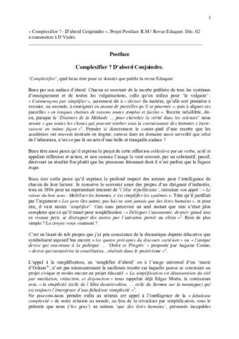 Préface du livre d'Hervé Cochet "Complexité en formation — Défi… Diversité… Dérive" (éditions l'Harmattan), p.15/16.