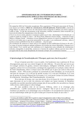 Document de travail accompagnant une conférence à l'Université européenne d'été de Nantes, sept 2002 "Relier les connaissances, Interdisciplinarité, Transversalité".