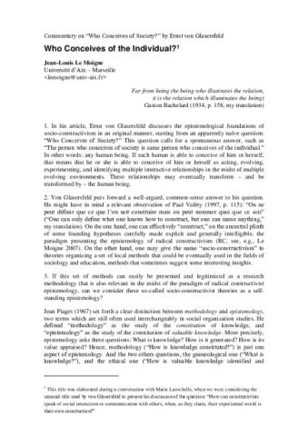 Commentaires sur article de Ernst von Glaserfeld pour ‘Constructivist Foundations’ V 3, n° 2 , mars 2008.