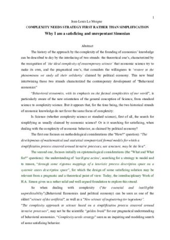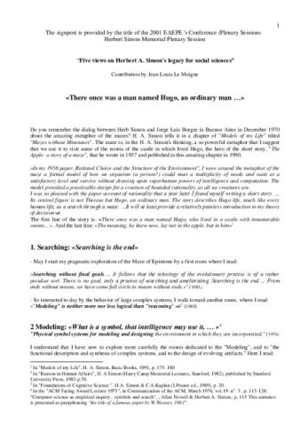 Liminaire et présentation de JL Le Moigne suivi du texte de H. Simon traduit et d'une apostille de l'auteur.