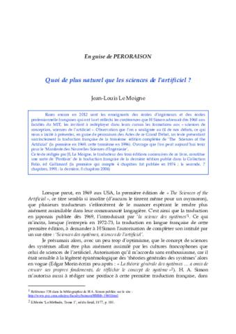 Postface sur l'ouvrage traduit par Jean-Louis Le Moigne de H. A Simon : Les sciences de l’artificiel, nouvelle édition. Ed Gallimard –col. Folio-Essai, 2004, ISBN 2 07 030152 4, 464 pages.