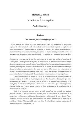 Préface de l’ouvrage de A Demailly : « Herbert Simon et les sciences de conception », Ed L’Harmattan, Coll. Ingenium, 2004, ISBN 2-7475 6827 X , p. 7-9.