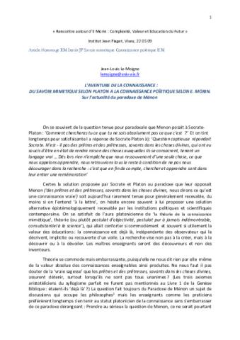 Communication au "Congresso internacional comemorativo do 1°centenario do nascimento de Jean Piaget" , Nov. 1996 , Lisboa-Almada (Instituto Piaget)