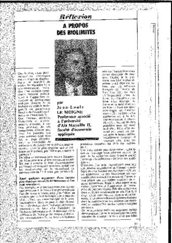 Conférence invitée à la quatrième conférence internationale de l'I.S.S.S.H.C. sur le thème "La science des systèmes dans le domaine de la santé" (Lyon, 4-8 Juillet 1988), p.37/43 des actes (publiés sous la direction de G. Duru & alii aux éditions Masson, collection de médecine légale et de toxicologie médicale, n°138).