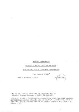 Communication présentée aux quatrièmes journées internationales de l'I.D.A.T.E. (Montpellier, 18-20 Octobre 1982), et publiée dans le "bulletin de l'IDATE" n°9 (Octobre 1982)., repris ultérieurement dans l'ouvrage, pages 218-234