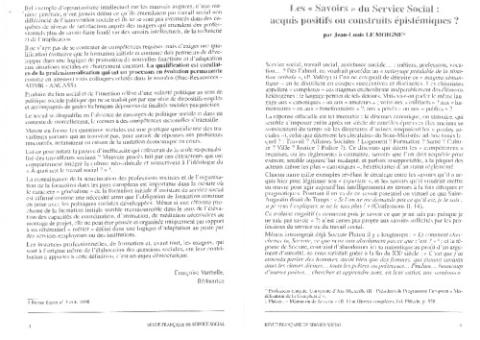 Publié dans la "Revue Française de Service Social" n°189-190, 1998 pages 5/10. .