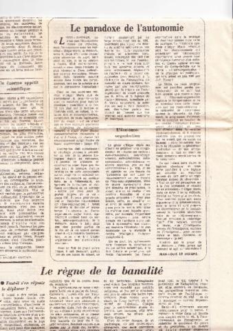 Point de vue publié dans "01 Hebdo" n°513, 1 page (6 Novembre 1978).