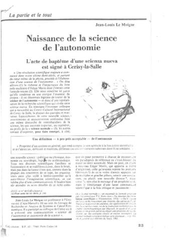 Note sur le tome II de "La méthode" d'Edgar Morin, journal "Le Monde" (19 Décembre 1980).