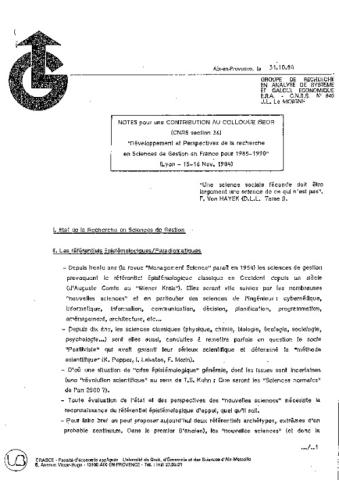 Communication au colloque ISEOR-FNEGE (Lyon, 15-16 Novembre 1984), p.132/140 des actes.