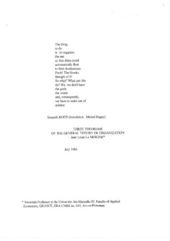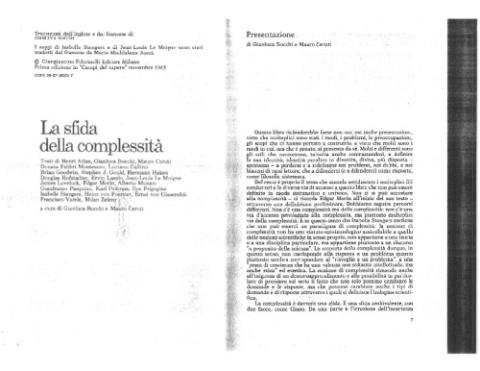 Communication au colloque international sur le thème "Les défis de la complexité" — "La sfida della complessità" — (Milan, 25-26 Octobre 1984), p.85/102 des actes du colloque.