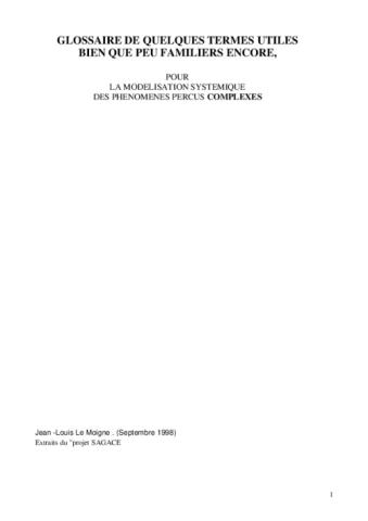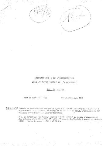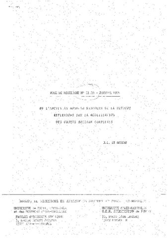 Rapport de recherche sur contrat ATP "analyse de système" du CNRS n°4227, document GRASCE, 158 pages (Septembre 1979). Ce travail fera ensuite l'objet d'une communication au colloque "Système, science et savoir" organisé par l'université de Laval (2-3 Juin 1980), 42 pages puis au colloque CNRS de Lyon , 1980. Publié in extenso dans l'ouvrage collectif dirigé par J. Lesourne "La notion de système dans les sciences contemporaines"(VOL 2), Librairie de l'université d'Aix-en-Pce, p.249/316 (Juin 1980).