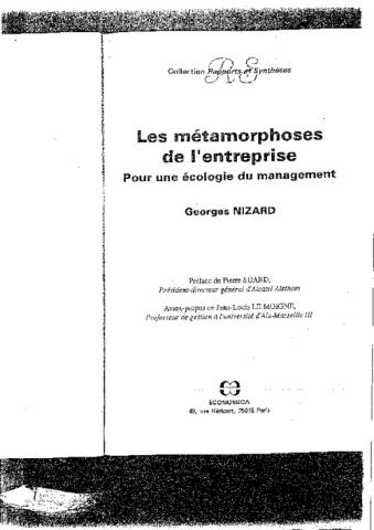 Avant-propos du livre "Les métamorphoses de l'entreprise : pour une écologie du management" de G. Nizard, p.7/12 (Éditions Economica).
