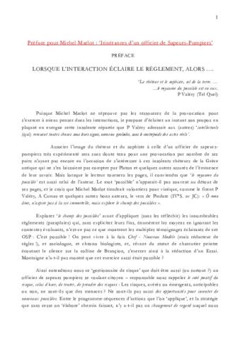 Préface au livre du Colonel Michel Marlot : ‘Itinérances d’un officier de Sapeurs-Pompiers’