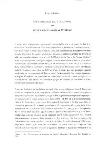 Préface du livre de Jean Deschamps "Savoir et/ou pouvoir — essai sur la démarche scientifico-technique" (éditions des Presses Universitaires de Pau), p.7/8.