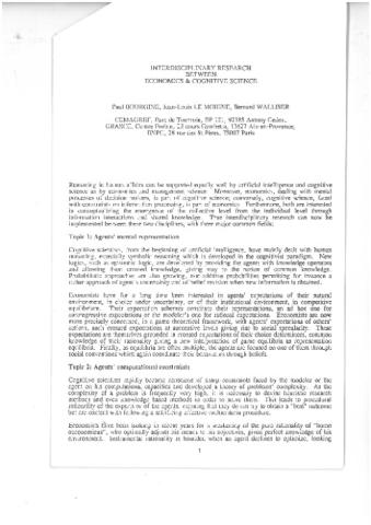 Avant propos des Proceedings de la conférence CECOIA 2 , Paris 1990 édité sous le titre :"Economics and cognitive science" ed. P.Bourgine&B.Walliser, Pergamon Press , Oxford 1992 , pages1-4.