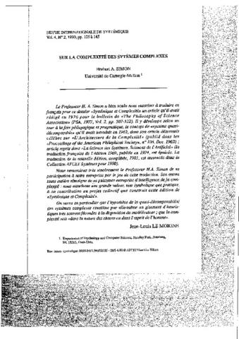 Traduction en français de la deuxième édition complétée de : "The science of artificial" de H.A. Simon , 1981, (éditions Dunod), 230 pages.