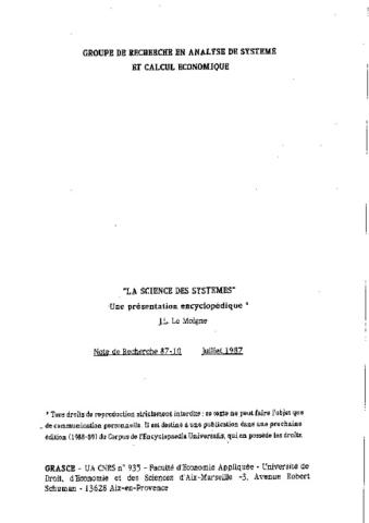 NrG n°87-10. Article "Systèmes (théorie des)" de l'Encyclopædia Universalis (édition de 1989, p.1032/1038).
