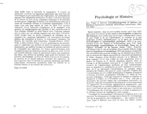 Sur Psychogénèse et histoire des sciences de Jean Piaget et Rolando Garcia. Revue Pandore N°25