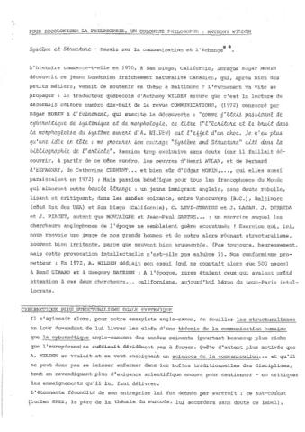 Editions ESF, 190 pages. Collection Communication et Complexité. 1994. (épuisé)