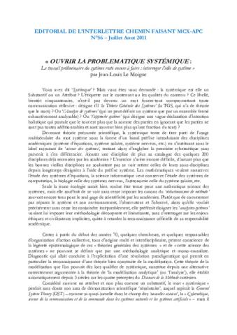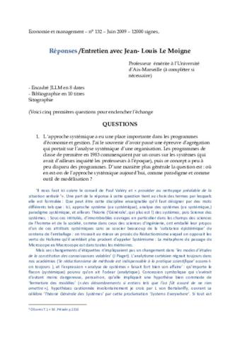 Entretien avec Jean Louis LE MOIGNE (Revue perspectives, N° 4, p.179 181)