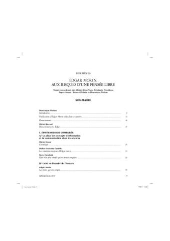 Entretien réalisé par Jacques Perriault, Stéphanie Proutheau, Edouard Kleinpeter et Alfredo Pena-Vega dans Hermès Revue n°60 (ISSC – CNRS) HOMMAGE à E MORIN (p. 157 – 163 )