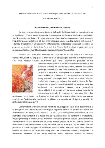 Pour le livre en hommage à André de PERETTI, pour ses 95 ans, par Martine LANI-BAYLE.
