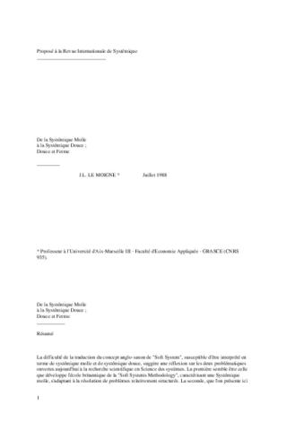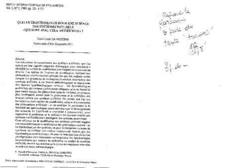 "Revue Internationale de Systémique" Vol. 1, n°2, p.239/245.