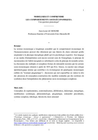 Janvier 2002, publié en anglais dans Contribution to the special issue of Journal of Economic Psychology, in memory of Herbert A. Simon.