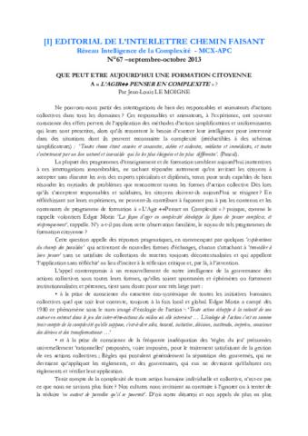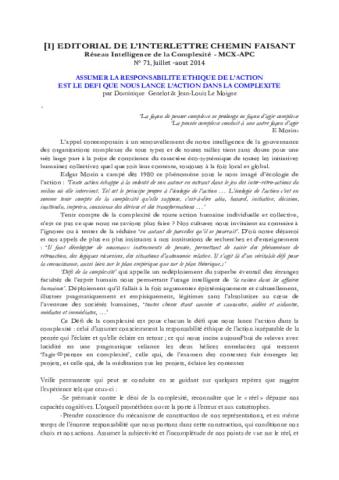 L'éditorial du Réseau Intelligence de la Complexité (Mars-Avril 2014) n° 70