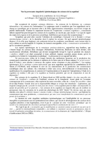 Conférence au Colloque du LEA-CM (Univ. Lyon II, ISH), “De l’approche systémique aux sciences cognitives”, Lyon-Villeurbanne, 16 mai 2003.