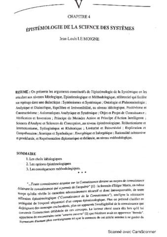VOIR LA PUBLICATION LIEE "Epistémologie de la science des systèmes"